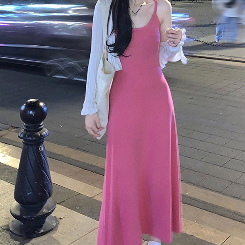 순색 캐주얼 면마 롱 원피스